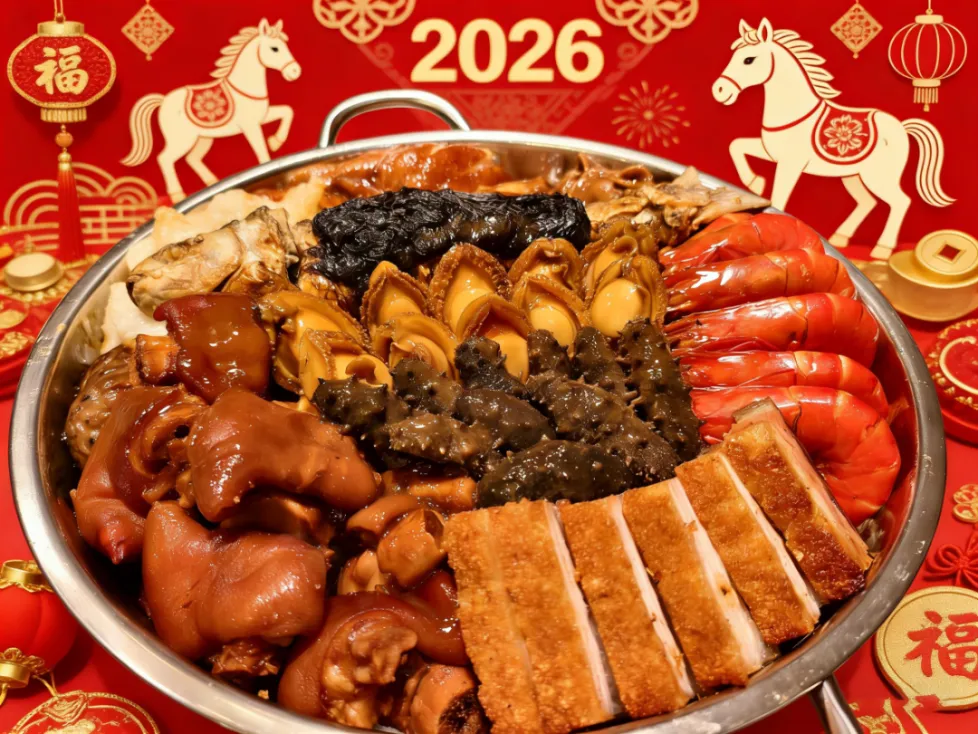 千叟宴以孝聚情,以食传暖,一席盆菜汇聚岭南年味与团圆美好!今年的千叟盛宴大盆菜将由南海温德姆花园酒店提供,包含鲍汁扣辽参、鲍汁扣花胶、鲍汁扣鲜鲍鱼、白灼九节虾、豉油鸡、均安烧肉、焖猪手、酿鲮鱼、焖猪利、焖大花菇、焖莲藕焖白萝卜、炸支竹、生菜(生上)、寿桃等菜式、食材,荤素搭配、层层入味,寓意 “盆满钵满、福寿安康”。