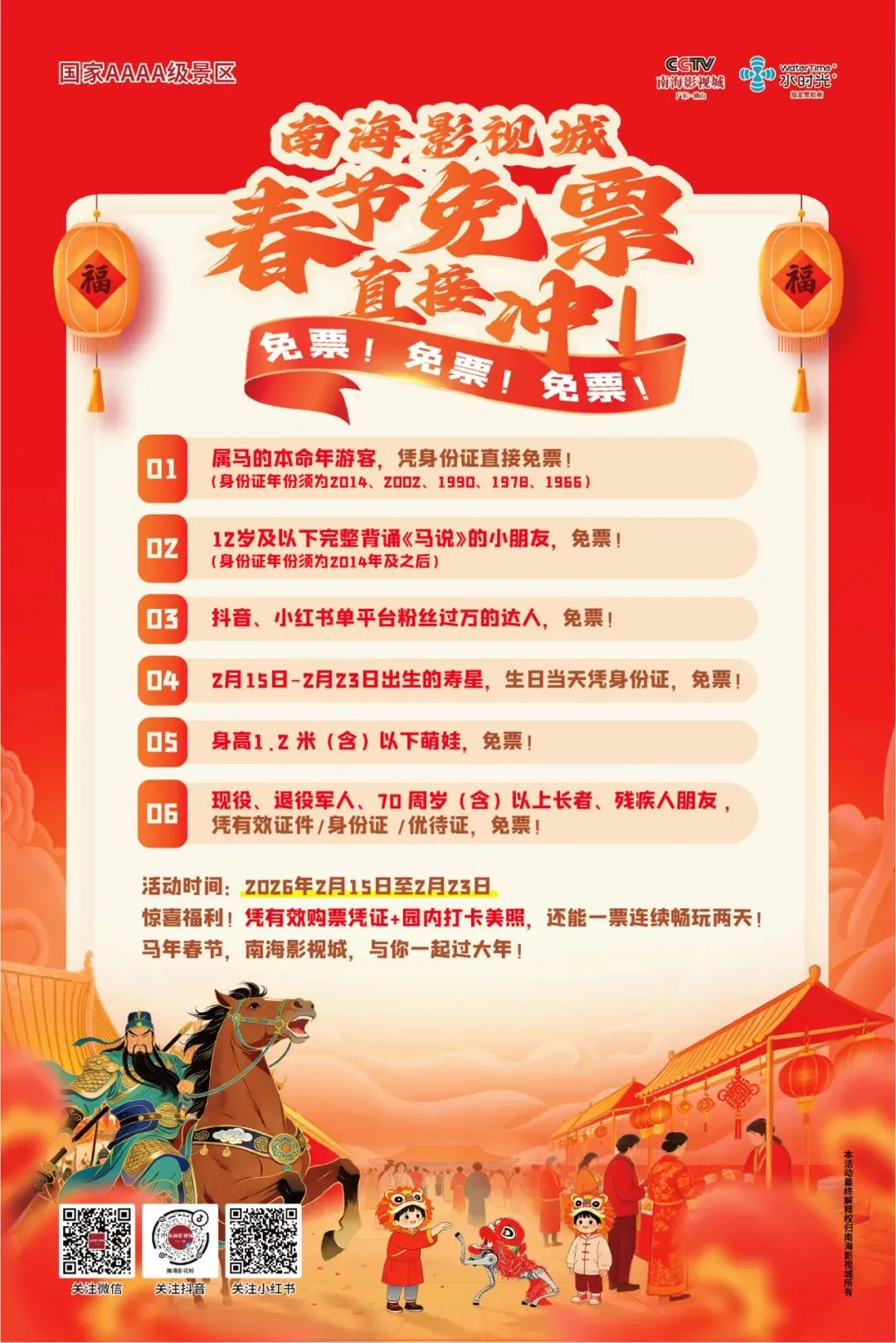 2026马年春节,南海影视城“免票”狂欢!超50场演出×群演体验×新春市集×民俗互动,一站式解锁中国年的N种打开方式!