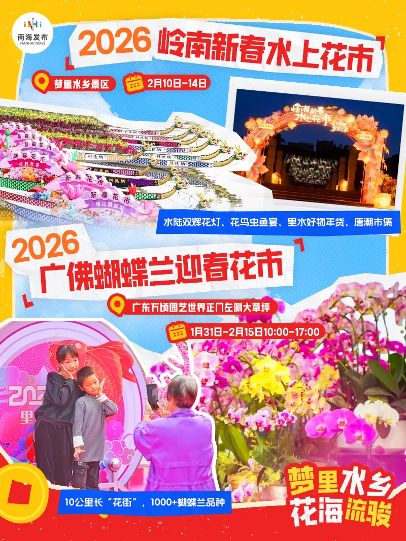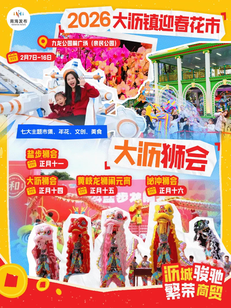 全佛山最大花灯展、乐高积木展、舞火龙、赛博马……2026年南海迎春花市2月7日正式开市!连续10天,桂城街道德鸿文汇创意园、K12Park素质成长中心、南舜怡海港三大会场同步发力,把传统年味、潮流玩法、非遗宝藏全打包!