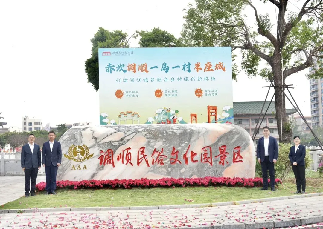 2月13日上午,调顺民俗文化园国家3A级旅游景区揭牌仪式举行,标志着调顺文旅发展迈入新阶段,为赤坎区乃至湛江市全域旅游高质量发展注入强劲新动能。湛江市人民政府副市长吴国雄,赤坎区委副书记、区长李平军,市文广旅体局副局长莫智铣,赤坎区委副书记黄政,区委常委、宣传部部长李文冠,区委常委、政法委书记林喜榆等领导出席仪式。