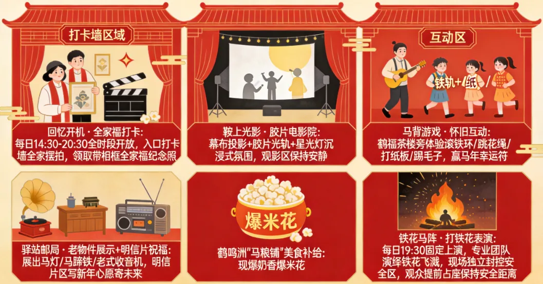 集结马灯、马蹄铁、老式收音机等“马背上的记忆”老物件,沉浸式感受时光韵味;设明信片祝福区,写下新年心愿,把马年美好寄给未来的自己。