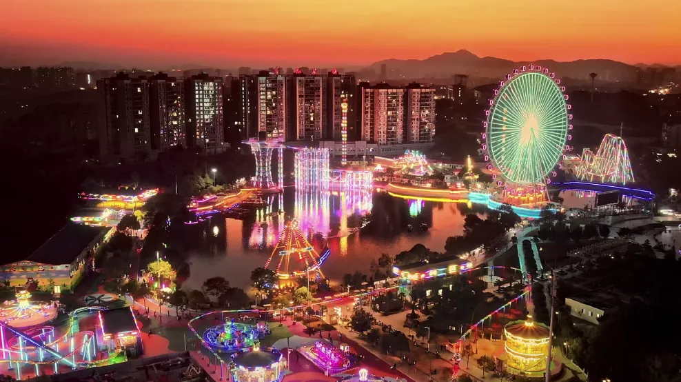 “鹤鸣奇幻夜”邀你奇遇新春。在鹤鸣洲围看胶片老电影、看非遗打铁花,赏主题灯光秀,参加寻宝、套马竿、投壶等活动,寻找时光里的年味。