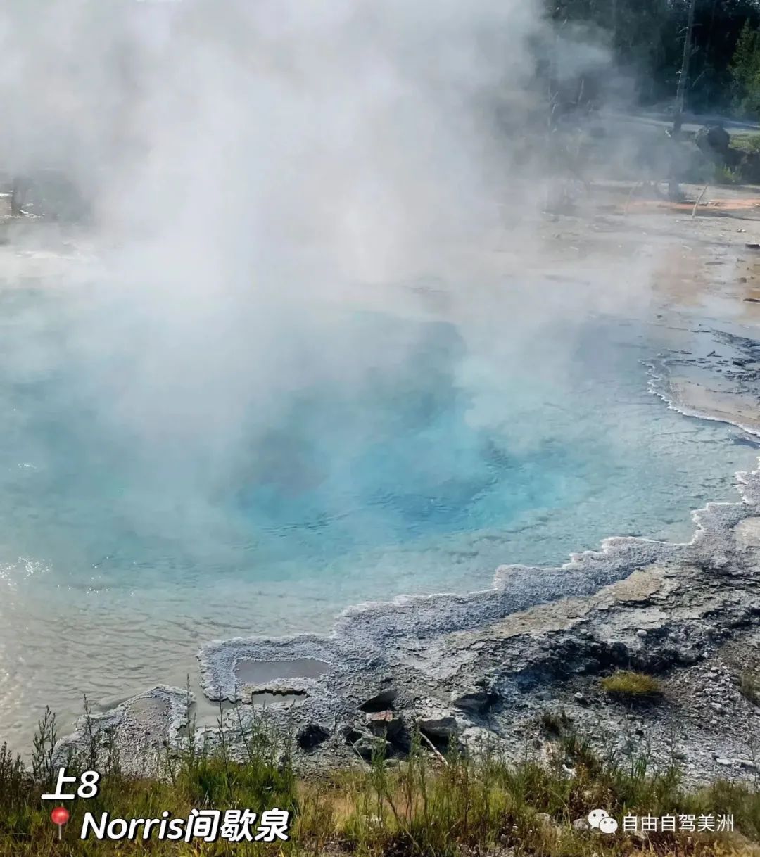 很多个,可以沿着栈道看。我走了Norris Geyser Basin Complete Loop Trail,边走边看大概一个半小时。时间够的话推荐