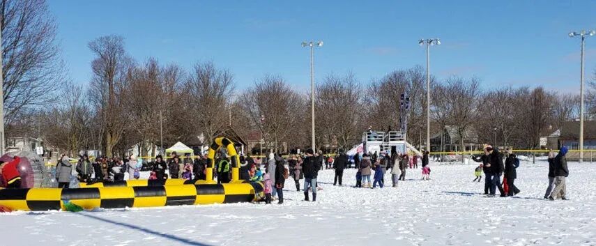 适合全家参加的冬季嘉年华,包含充气游乐、冰雪绘画、手工活动、现场表演、烤棉花糖、球类运动及本地市集与美食摊位。