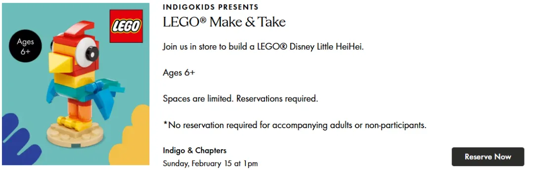 乐高小鸟(Disney HeiHei,如图所示)拼搭和带走活动。