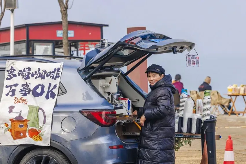 “观鸟潮”带出“观鸟经济”,当地群众吃上了“生态旅游饭”。每到周末,这里商贾云集,城里的现磨咖啡车也开来了。(王天定 图/文)