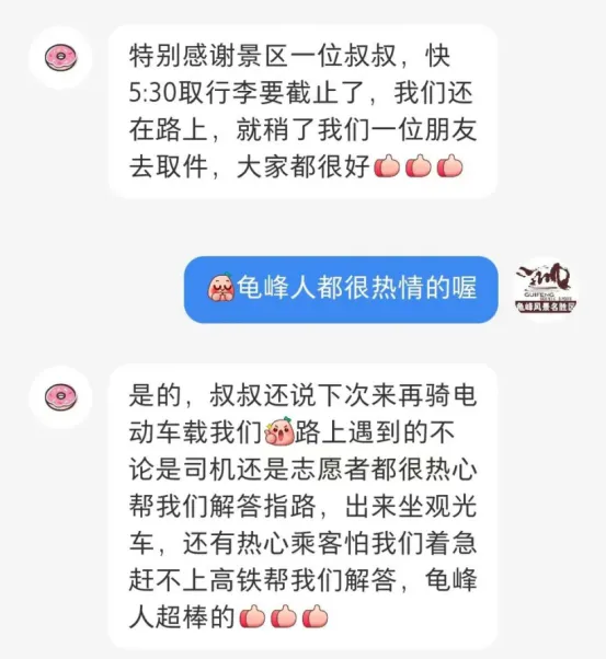 这样的温暖反馈,在龟峰的“评论区”随处可见——有游客因景区平价商店物价与市区持平而点赞,有人因各种细致的暖心服务及志愿者全程帮扶而动容,有的则因便宜、舒适的游览体验而选择带着家人二次到访。