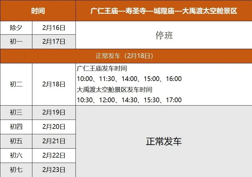 2026年春节期间芮城旅游直通车安排
