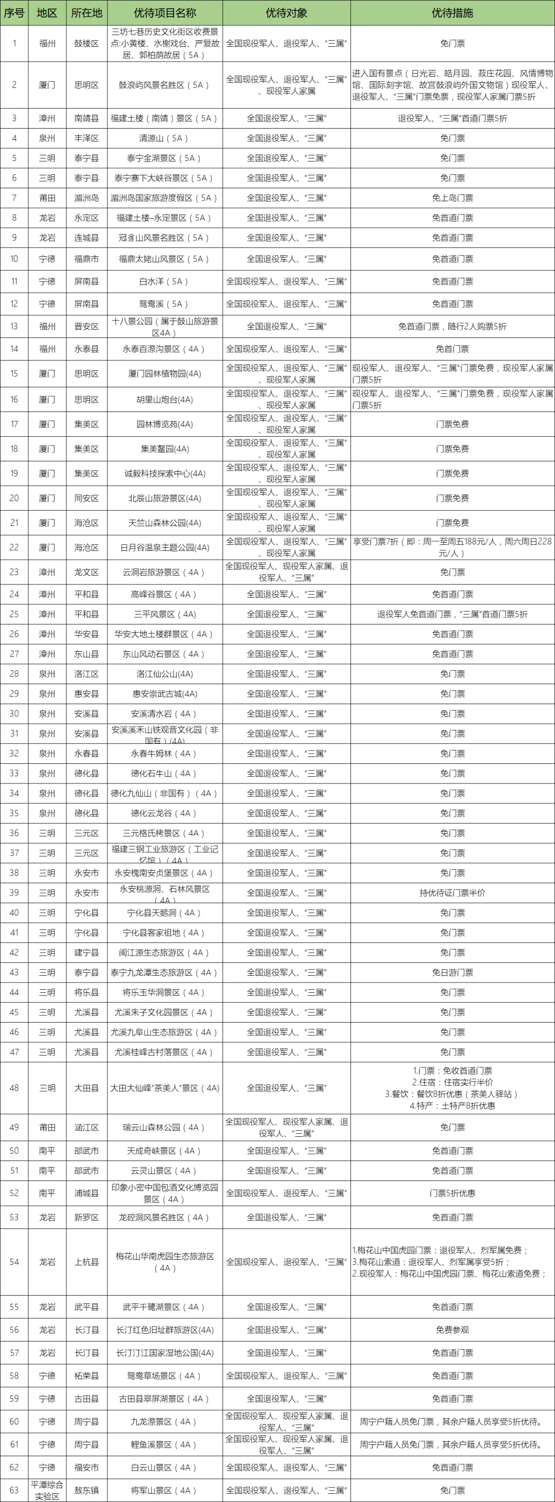 战友请查收!春节长假福建旅游景区优待清单来了→