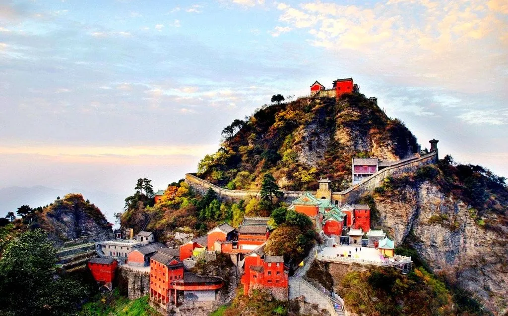 早乘车前往世界道教文化遗产 AAAAA 级风景区武当山抵达景区后换乘景区观光车;(大门票已 含,观光车费用自理)前往游览【太子坡景区】(时间约 1H),又名复真观,这座在武当山狮子 峰 60 度陡坡上的古代建筑,被当今建筑 学家赞誉为:利用陡坡开展建筑的经 典之作。古代建筑大 师们,巧妙地利用 山形地势,不仅创造出 1.6 万平方米的占地面积,而且建造殿宇 200 余间,结 构出"一里四道门"、"九曲黄河墙"、"一柱十二梁"、 "十里桂花香"等著名景观。