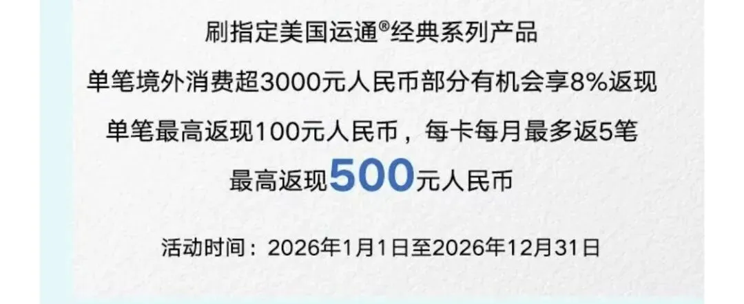 光大银行这次推出的运通卡境外活动确实给力,活动时间从2026年1月1日到6月30日,正好覆盖春节假期。我仔细研究了一下规则,发现有几个亮点值得关注: