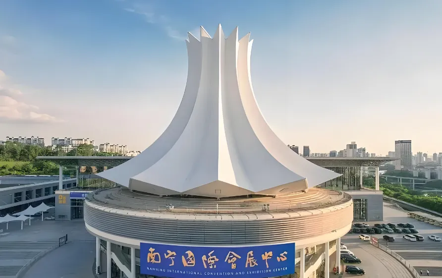 第七站:南宁国际会展中心就在市区,那朵巨大的“朱槿花”建筑是南宁的新地标。晚上灯光秀非常震撼,特别是外墙的铜鼓图案变幻时,科技感与民族风完美融合。旁边就是民歌湖,散步绝佳。游玩策略: 晚上去民歌湖边看倒影,不用买票进馆,外面拍照更出片。