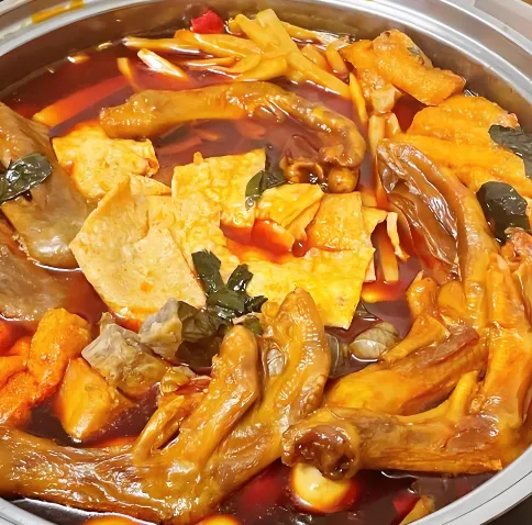 第四美食:田螺鸭脚煲螺蛳粉的“大哥”!鸭脚先炸后炖,吸饱了螺蛳汤的精华,一抿脱骨。里面还有芋头、腐竹、鹌鹑蛋,香辣浓郁。晚上宵夜首选,去“老表记”或者“23号鸭脚铺”,人均50元吃到撑,记得点一份炸蛋泡在汤里。