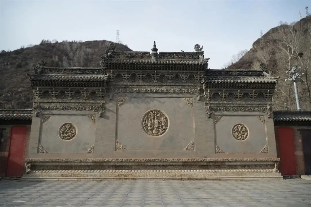 寺前那座影壁,赫然映入眼帘。十五米余长,静静横陈,如一卷缓缓铺开的石上史诗。细看正中,福、禄、寿三星神态可亲;转身背面,观音、善财、龙女衣带当风,周围花草缠绕,每一刀雕刻都含着匠心的温度。人说这是五台山最长、也最精的照壁,立于其前,只觉得时光都慢了。