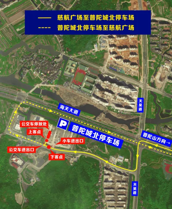 “普陀城北停车场”上下客点示意图