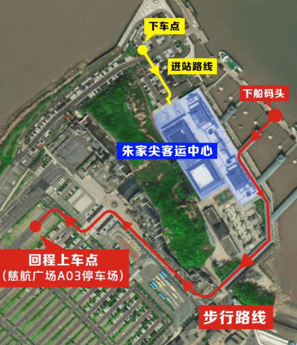 开通本岛大型停车场-慈航广场的公交接驳专线,直达朱家尖蜈蚣峙码头内停车场,可享受公交接驳绿色出行专用通道,免除站外排队。