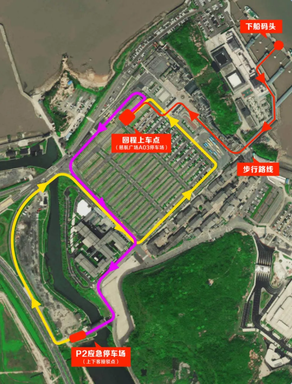 “P2应急停车场-慈航广场”免费接驳专线