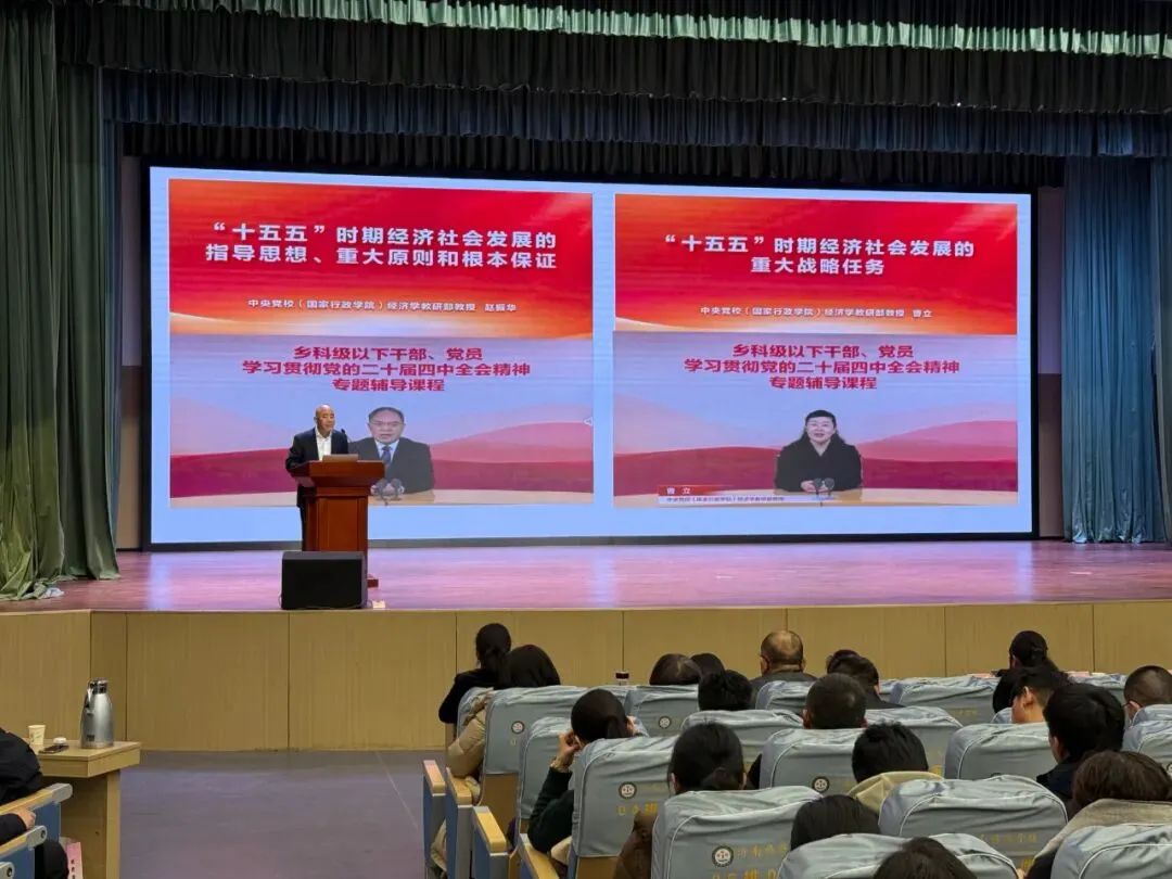 学习中,黄寿友围绕“十五五”时期经济社会发展的指导思想、重大原则及战略任务等核心内容,结合中央党校专家辅导课程,系统解读全会精神的核心要义,并结合学校教育教学实际,引导教职工将学习成果转化为推动学校高质量发展的实际行动。现场通过课件展示、要点解读等形式,让全会精神入脑入心,参会教职工认真聆听、记录要点,学习氛围浓厚。