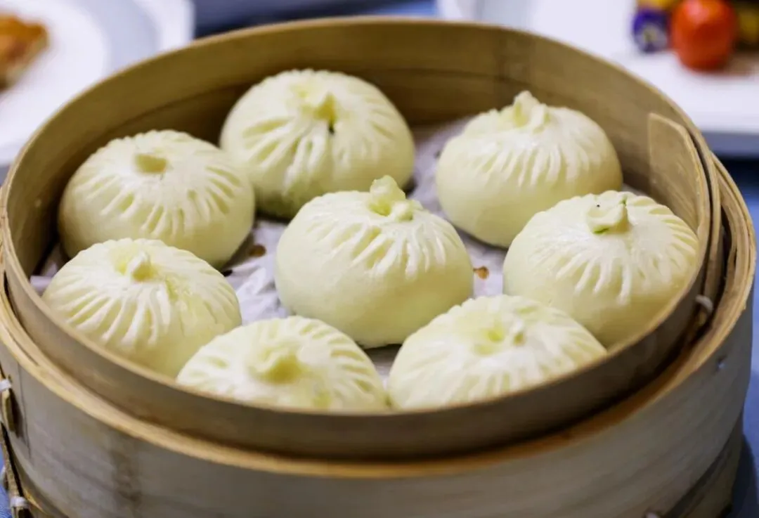 菱角秧包子:雪白暄软,菱角秧、粉丝碎与猪肉末融合,鲜味儿十足。
