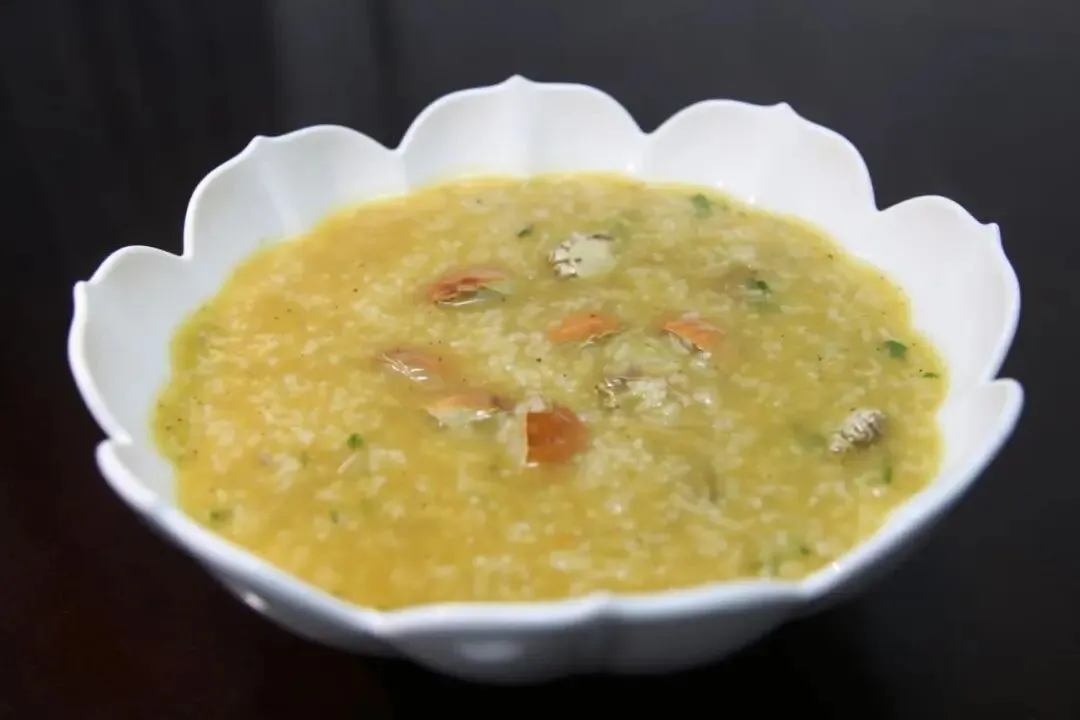鲁肃蟹粥:糯米熬煮,粥香混合蟹香,鲜咸香甜。