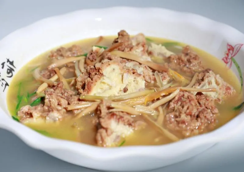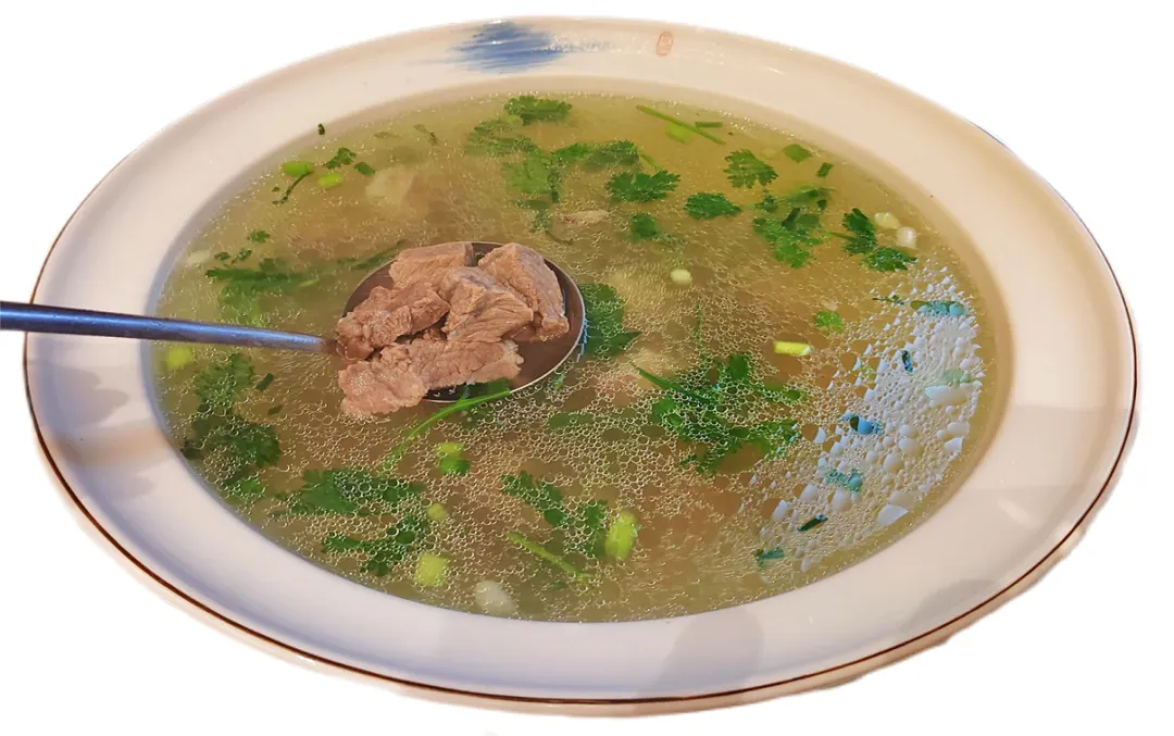 清汤牛肉:选用本地秦川小黄牛,肉质鲜嫩,汤味清鲜。