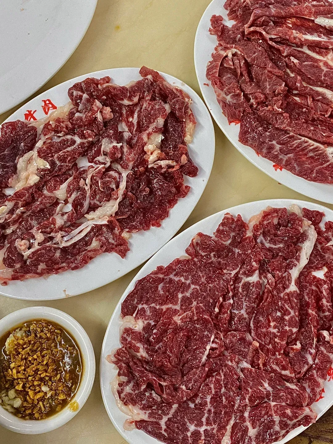 最地道的潮汕吃法就是要蘸沙茶酱,鲜肉的牛肉稍许滚烫,裹上满满的沙茶酱,一口满足!满口牛香再加上沙茶的咸鲜和回甘,层次感十足。