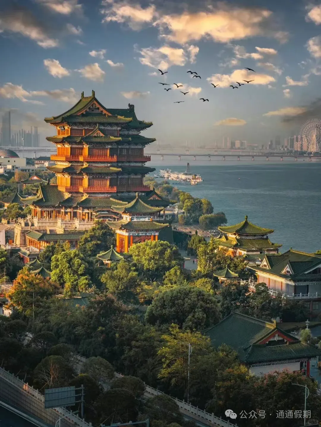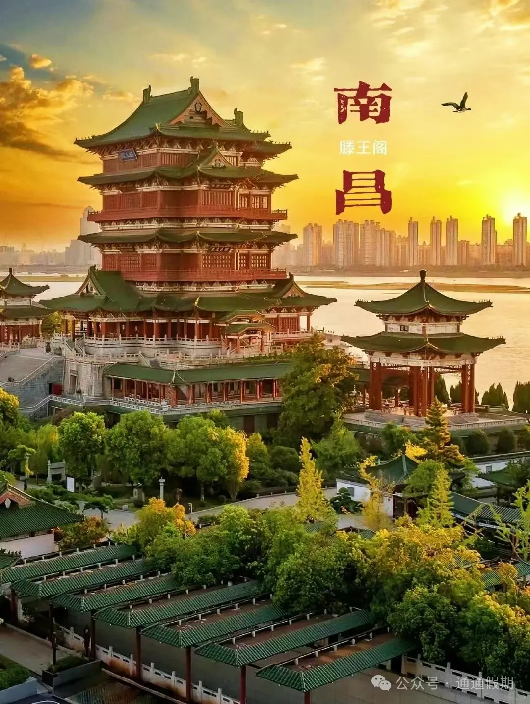 游【滕王阁】(游览约1.5小时)江南三大名楼之一,始建于唐朝永徽四年,因唐太宗李世民之弟——李元婴始建而得名,因初 唐诗人王勃诗句“落霞与孤鹜齐飞,秋水共长天一色”而流芳后世。贞观年间,唐高祖李渊之子、唐太宗李世民之弟 李元婴曾被封于山东滕州故为滕王,且于滕州筑一阁楼名以“滕王阁”(已被毁),后滕王李元婴调任江南洪州(今江西南昌),因思念故地滕州修筑了著名的“滕王阁”,此阁因王勃一首《滕王阁序》为后人熟知,成为永世的经典。滕王阁与湖北武汉黄鹤楼、湖南岳阳楼并称为“江南三大名楼”。