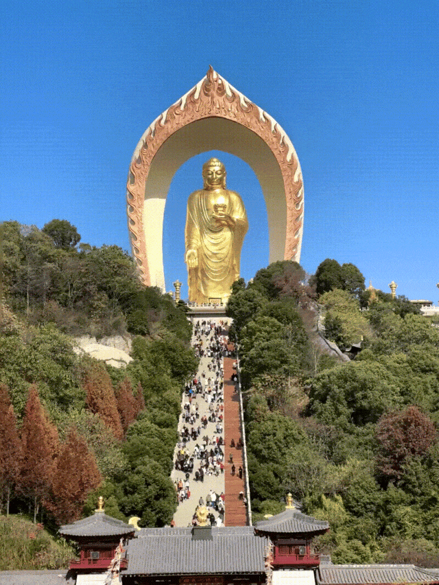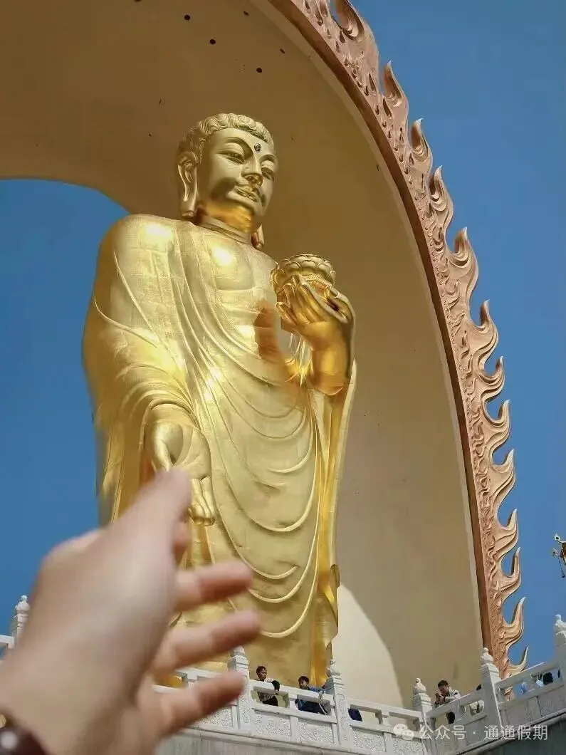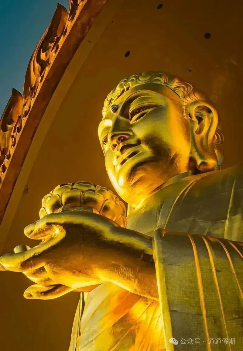 据说建造东林大佛总投资十多个亿,大佛全身都有黄金装裱,足足用了48公斤黄金镀身。