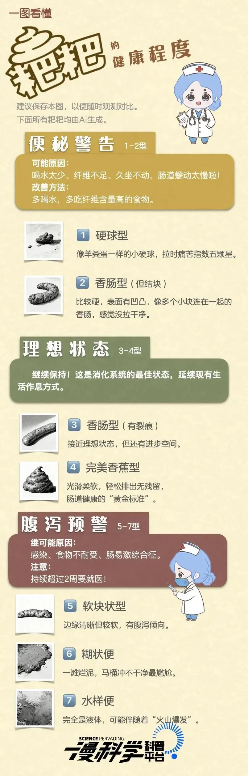 如果不知道怎么分辨,可以参考小漫之前讲过的“布里斯托大便分类法”,共有七种类型。
