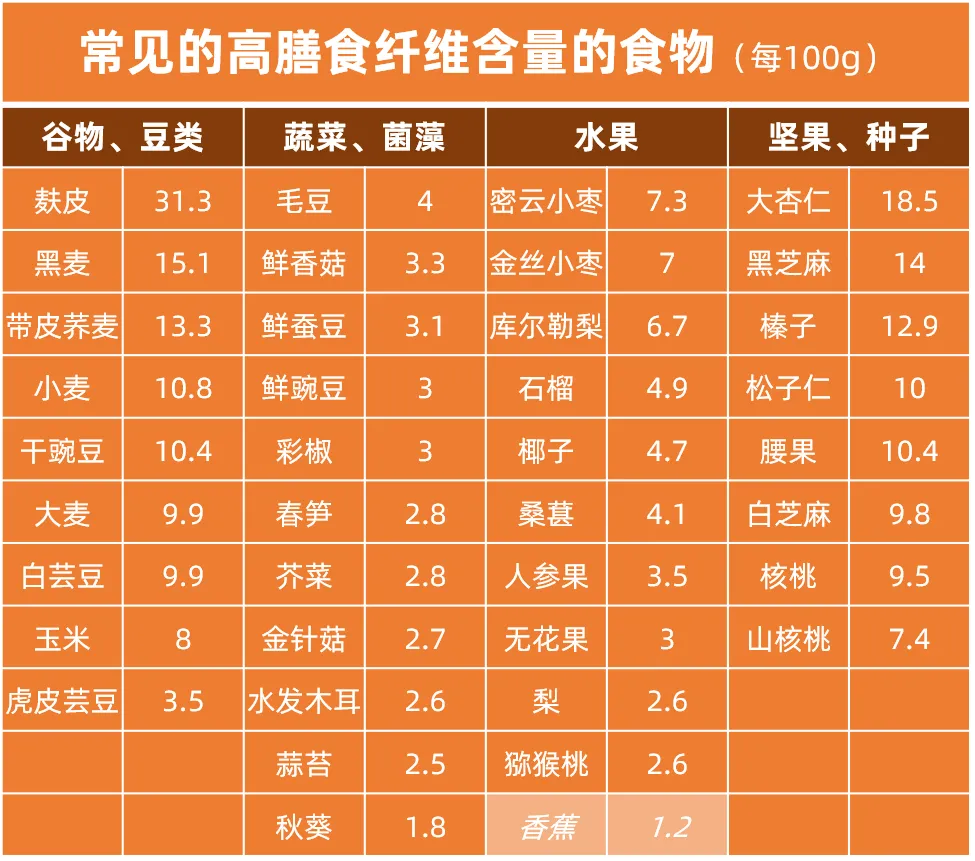 常见的高膳食纤维含量食物
