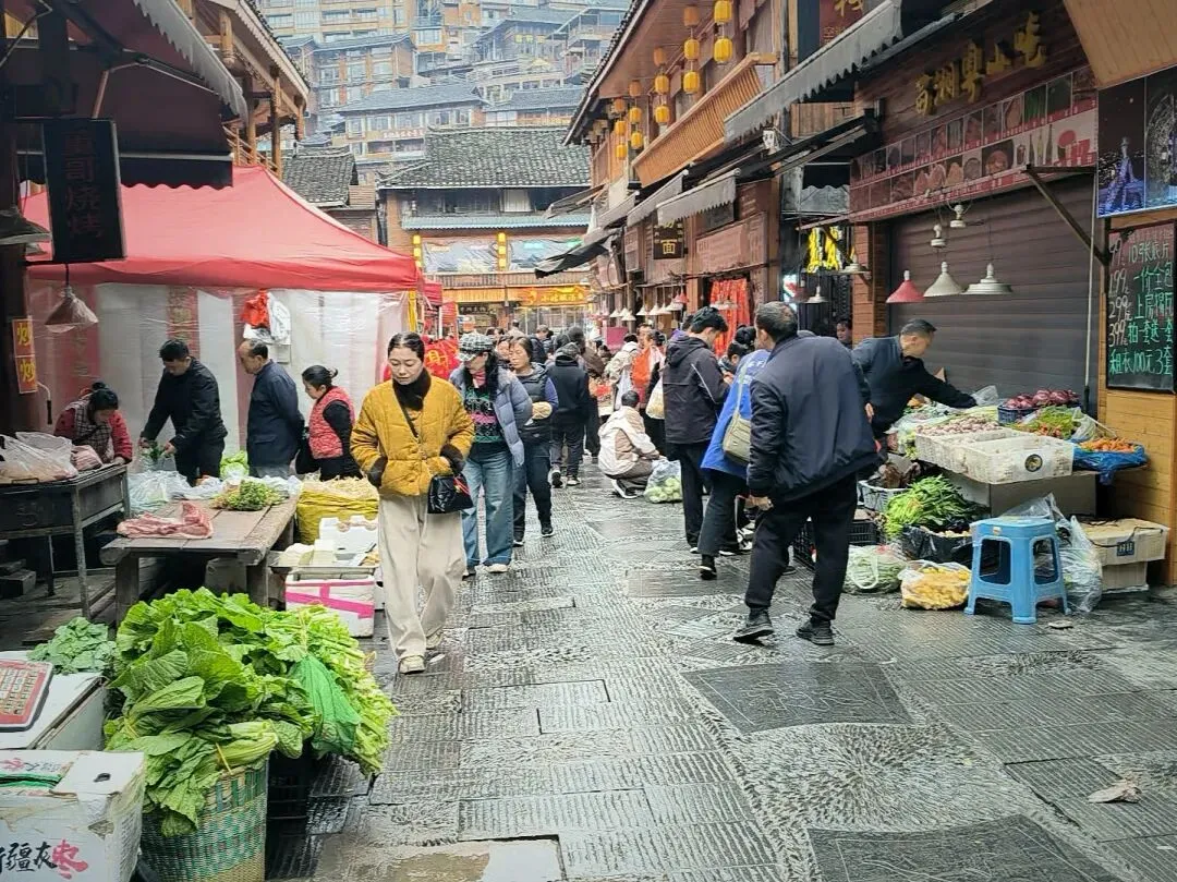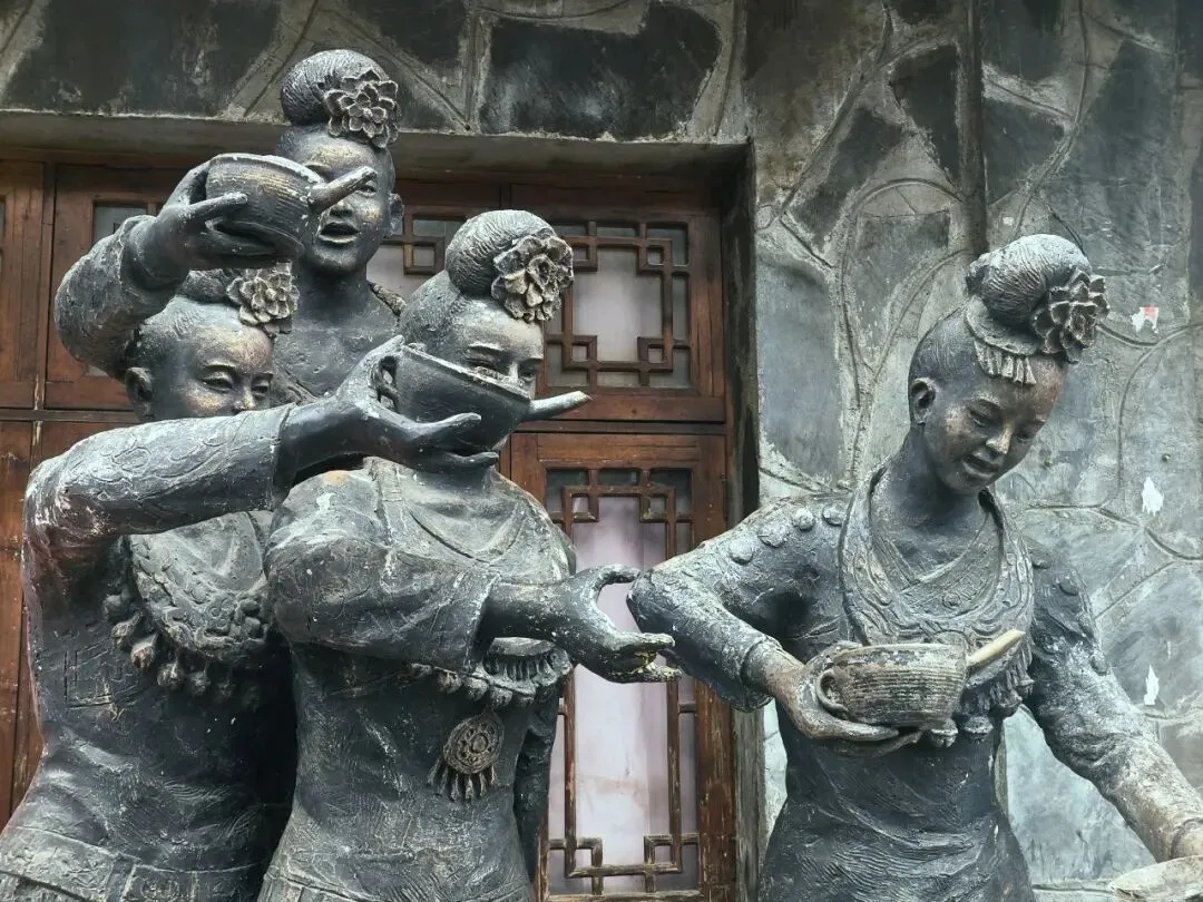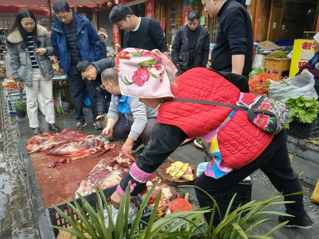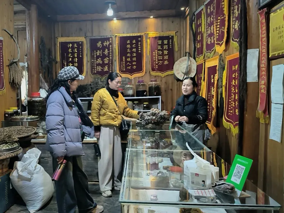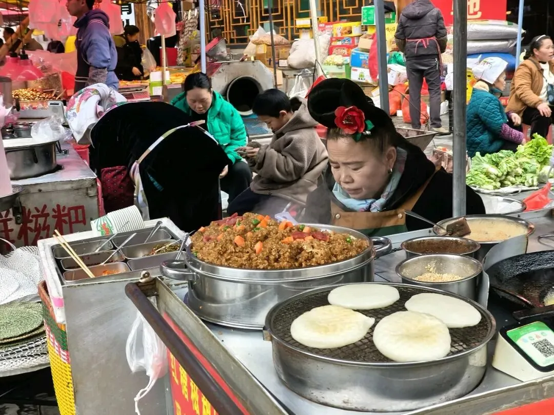 我们沿着石板路往下走。嘎歌古巷里,蜡染坊的蓝靛香味飘出窗外,银匠铺里传来叮叮当当的敲打声,散发出悦耳的声响。西江是著名的银匠村,苗族银饰的工艺之精湛,能让一块平凡的银片在铁锤的挥舞下,变得活灵活现。路边随处可见穿着盛装的姑娘,头上银角高耸,胸前银锁层叠,走起路来环佩叮当,风姿绰约。苗族服饰被称为“穿在身上的史诗”,这些银饰记录着这个古老民族数千年的迁徙密码。