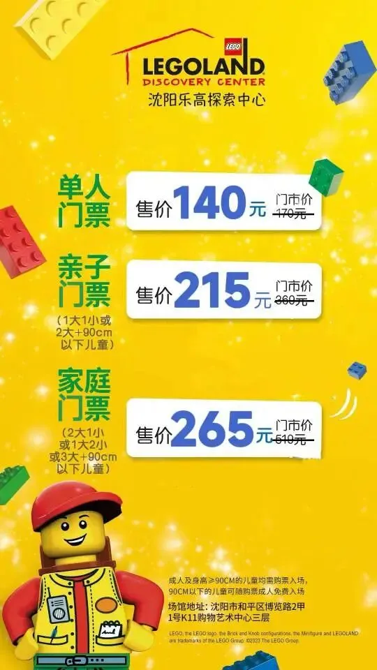 2026春节沈阳及周边景区游乐场汇总(六)沈阳乐高探索中心/沈阳海洋探索中心 乐高单人票:140元/海洋单人票:105元/单馆亲子票:215元