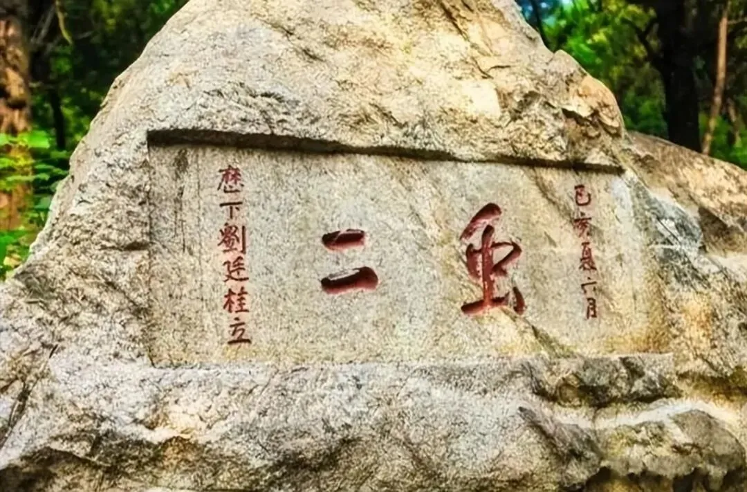 第二个景点:泰山刻石。 去过泰山的都知道,在泰山的万仙楼北侧,有一块特殊的碑石,上刻“虫二”两字! 这两个字,实在太奇怪了!据说当时日本学者,研究了10年,没有解读出含义!