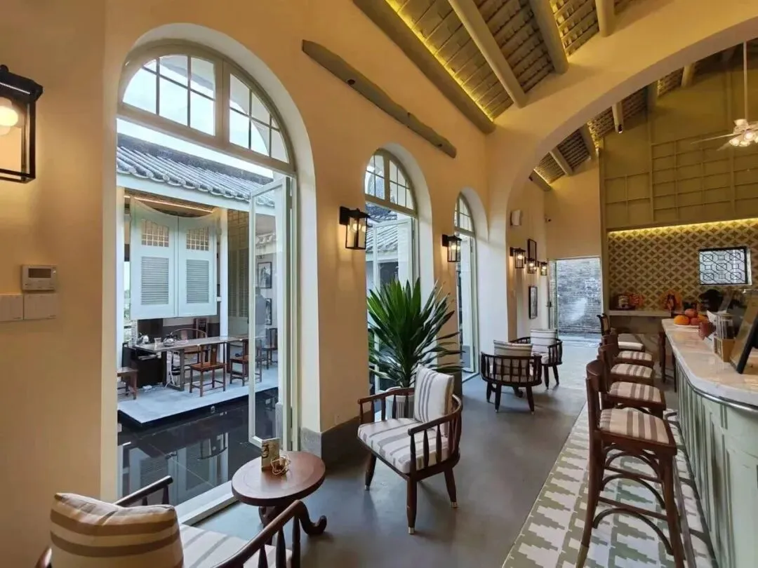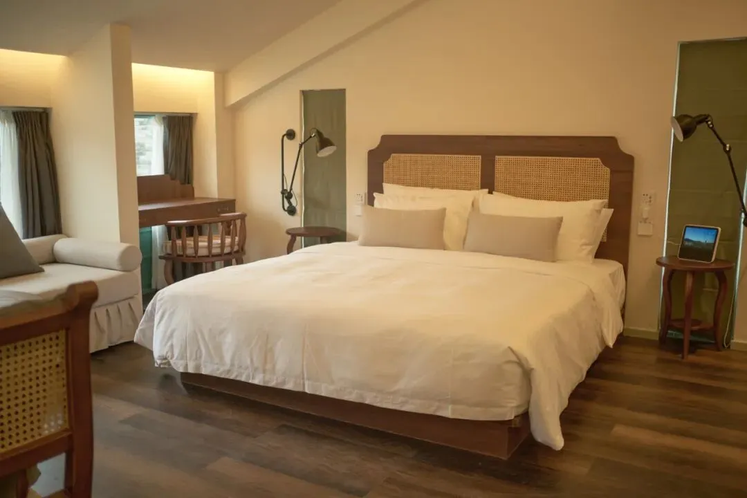 当第一缕晨光穿过600 年古建筑的雕花窗棂,落在铺着棉麻床品的床榻上,你会在木质结构的清香中缓缓醒来。