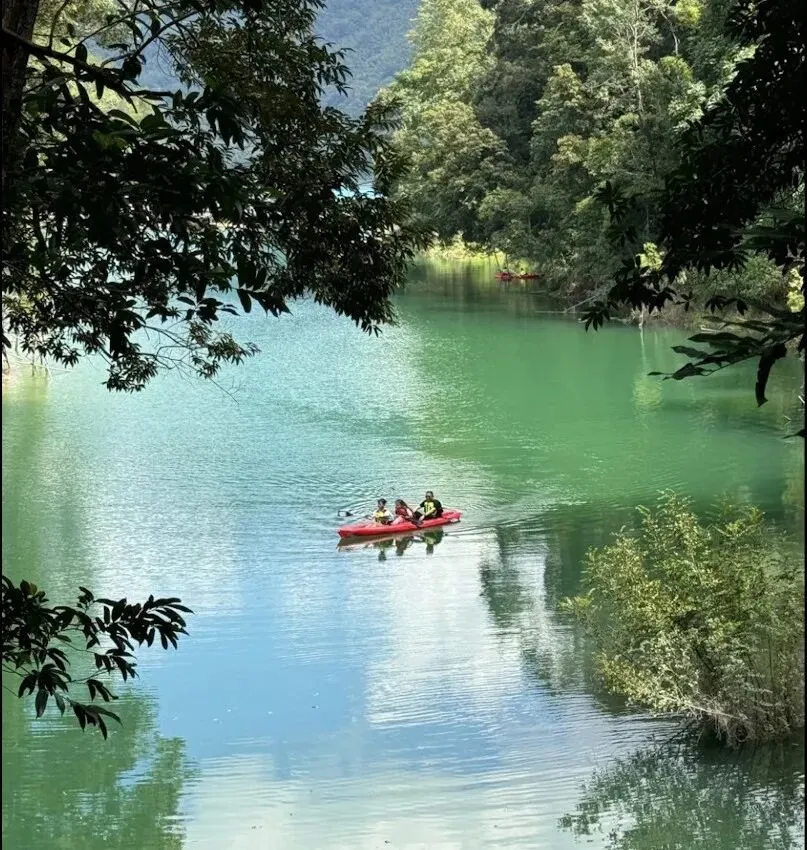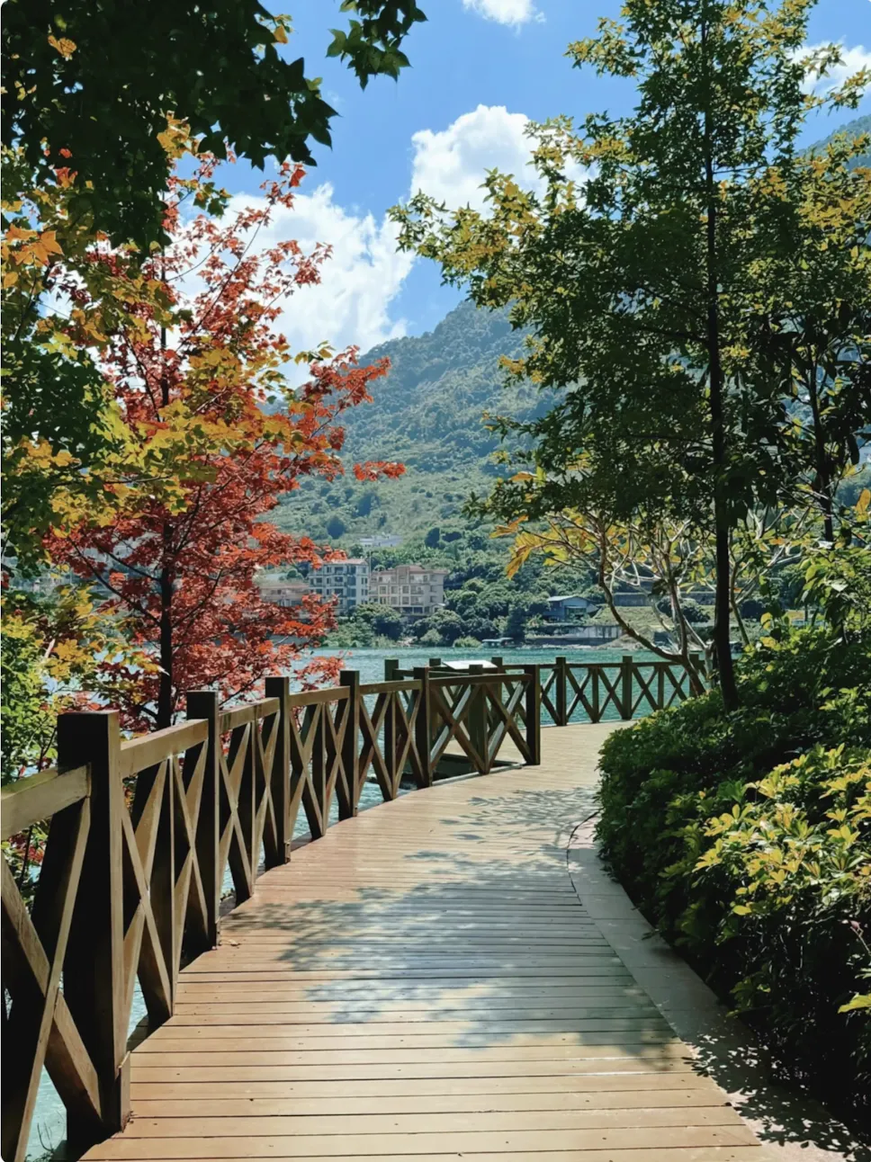 看两岸绿树成荫,水波荡漾,让自然风光洗涤心灵。