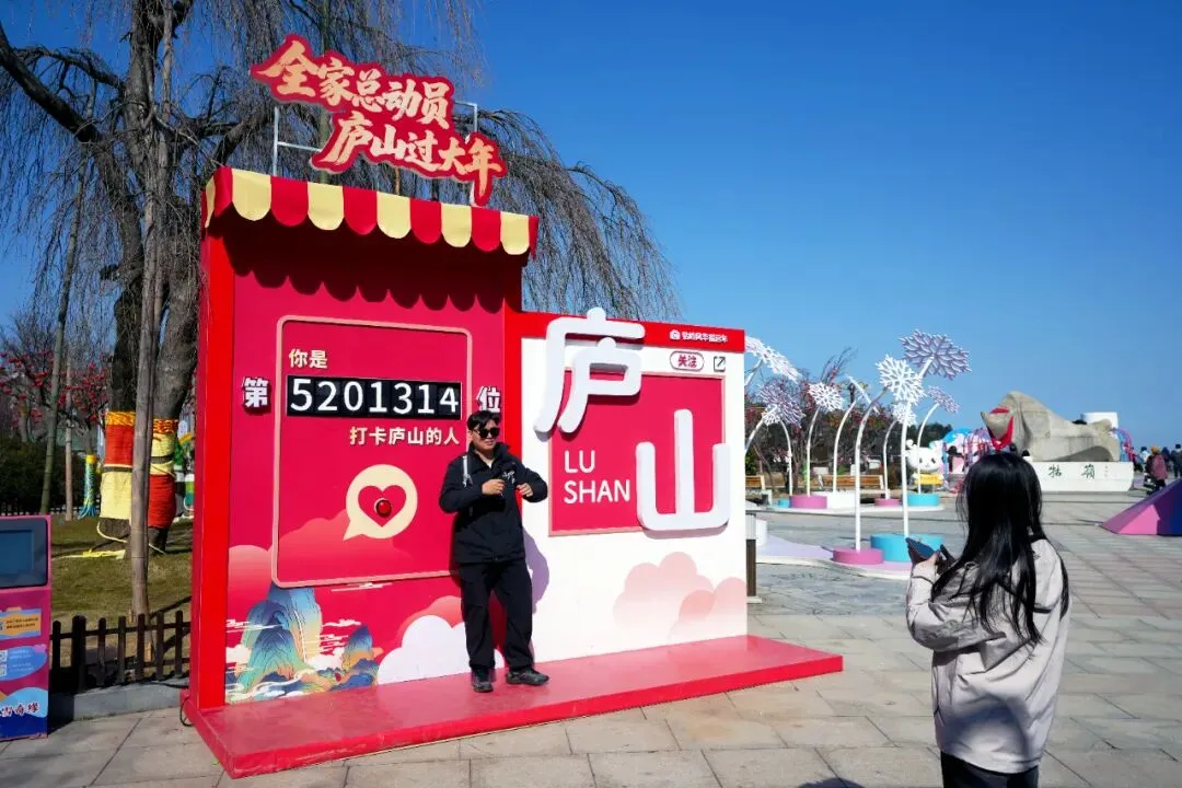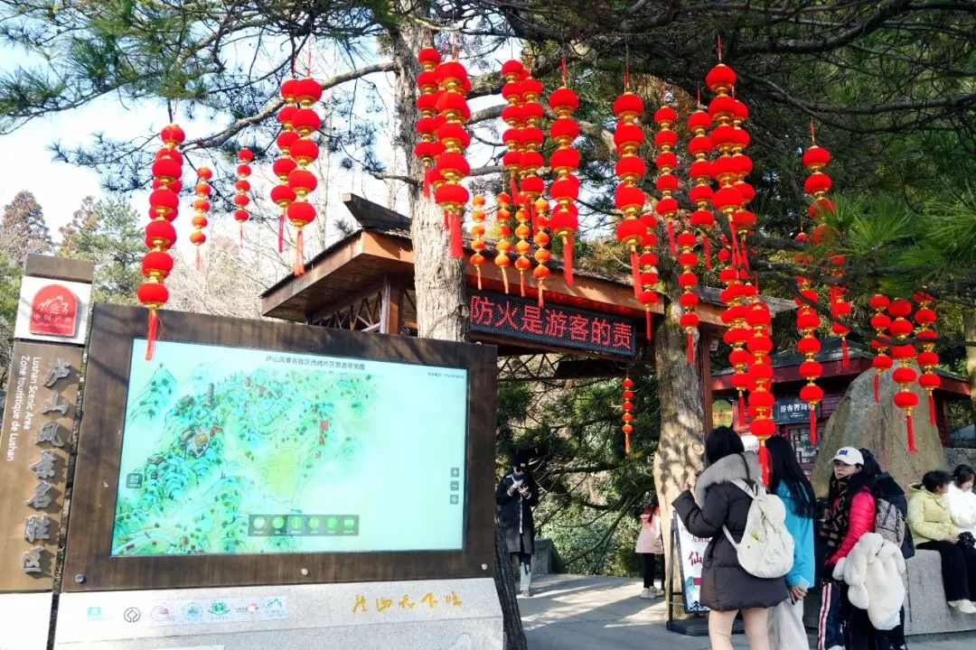 福建游客邱女士觉得庐山春节氛围浓厚,中国结、红灯笼,红红火火,处处都是过年的元素。祝愿庐山景区马年旅游开门红,也祝愿全国游客如庐山的瀑布云海,能舒展能停留,每一刻都随心自在,畅意开怀!