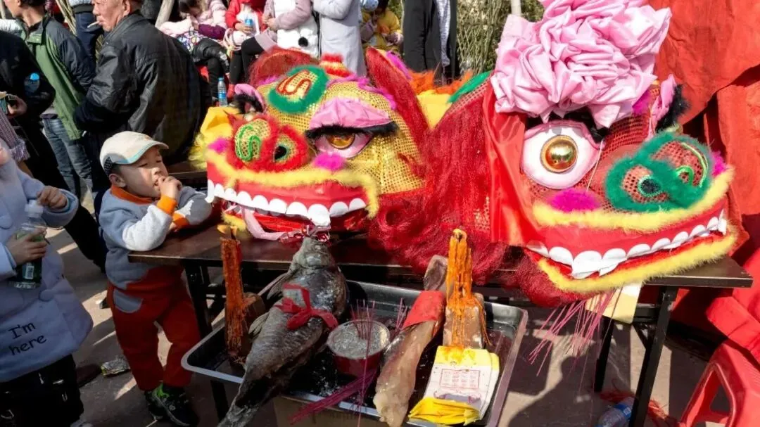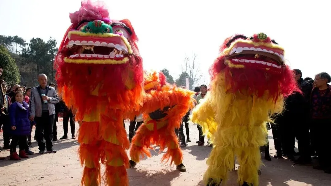 黄陂“僵狮子”:这种舞狮者被称为“马脚”,表演时神态、动作如神灵附体,极具神秘色彩和视觉冲击力,狮身舞动中尽显“将军狮子”的威严气势。