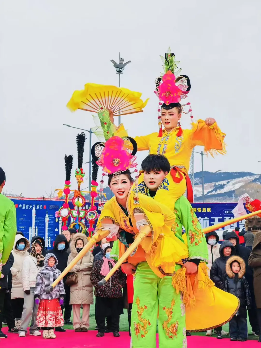 作为国家级非物质文化遗产,徐沟背棍被誉为“流动的杂技、空中的舞蹈”。艺人们以精妙的力学设计为基,通过“直顶、旁挂、活心”等绝技,让小演员凌空而立、随舞步轻摇,衣袂翻飞间宛如仙人下凡。抬棍者与背棍者以专属“号子”默契配合,步伐起落间,上立的人物便化作流动的戏剧场景,让观者在惊叹中感受传统工艺与表演艺术的完美融合。