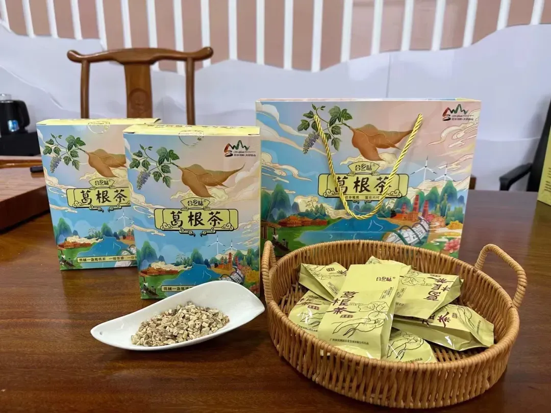 葛根茶:“合乡味”牌葛根茶经过清洗、切丁、烘干、炒制等工艺制作而成,包装精美,开袋即有淡淡豆香,茶呈颗粒状,可放入茶壶中冲泡,未入口便已沁人心脾,入公道杯中观其汤色金黄、晶莹透亮,茶香萦绕喉舌,久之不尽,似清风拂柳,如落水落花。添加红茶、熟茶一起冲泡,更是别具一番风味。