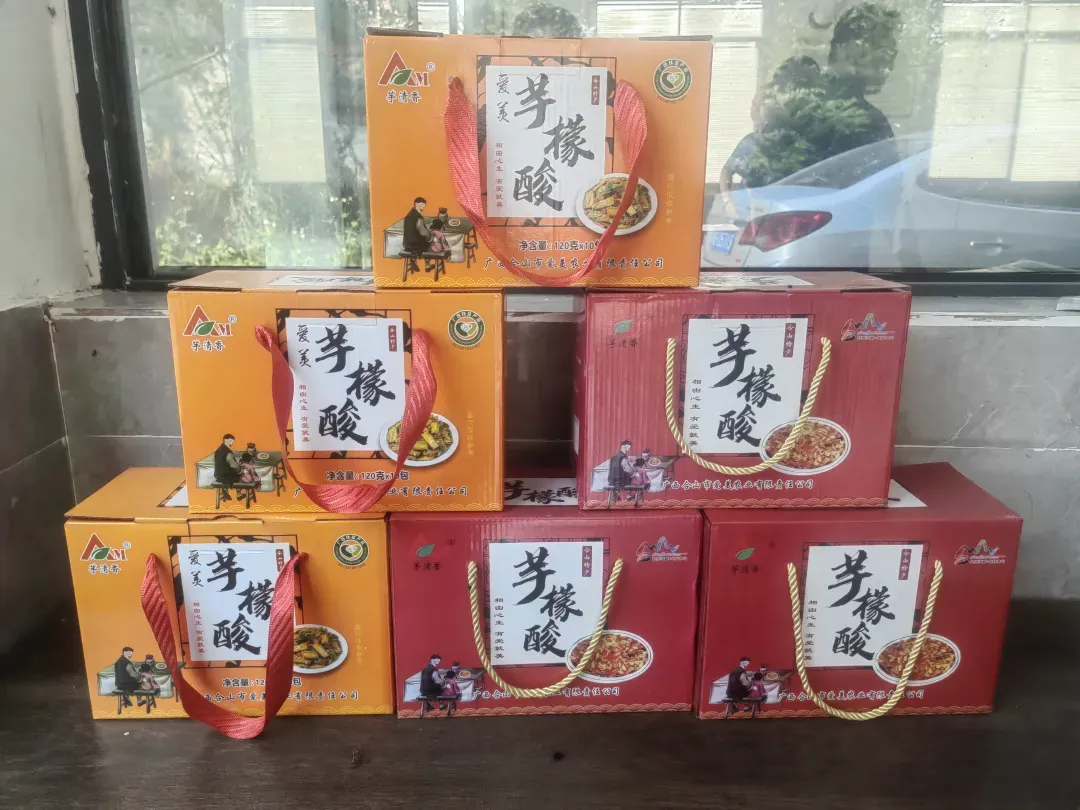 芋檬酸:合山有悠久的芋檬种植历史,芋檬酸是合山市传统特色农产品,以其味香、口感脆、能生津开胃而闻名。芋檬酸的烹饪方法多种多样,可以单炒,也可以和多种食材灵活搭配,如芋檬鸭、芋檬鱼、芋檬酸凉拌粉等。合山的芋檬酸与其他地方的芋苗酸、芋荷等有所不同,合山芋檬酸是整根芋檬茎秆腌制,无须剥皮,但入口极其柔嫩,不会留渣。合山芋檬酸是合山人乃至桂中人念念不忘、挥之不去的家乡味道。每逢过年过节,抓上一两把芋檬酸赠送亲友,让其特有的味道在亲友间传承,体现浓浓的故乡情怀。目前有原味、香辣味和酸辣味等3个产品品种,既可佐餐,亦可作为佐料,酸、甜、辣、鲜,深受消费者的喜爱。