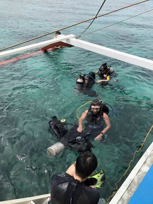 深潜会乘坐螃蟹船到固定水域,螃蟹船是菲律宾沿海地区常见的一种船只,船的两侧各有四根外伸出去的支架,样子有些像螃蟹的脚而得名。