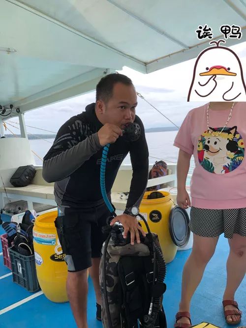 下水后唯一需要你做的就是平复心情,缓解紧张感,这里不得不说的是,作为新手,用水肺的第一次水下换气是需要自我调节或是做心理建设的,下到水面后深深的恐惧感席卷而来,可能会存在各种问题,比如嘴巴密封不严、眼罩进水,初潜者惊慌错乱中会大脑空白到下意识的用鼻子呼吸,眼罩鼻罩连通一体,眼罩进水的最直接反映就是鼻子也浸湿在水中,求生欲会让你使劲往水面扑腾。