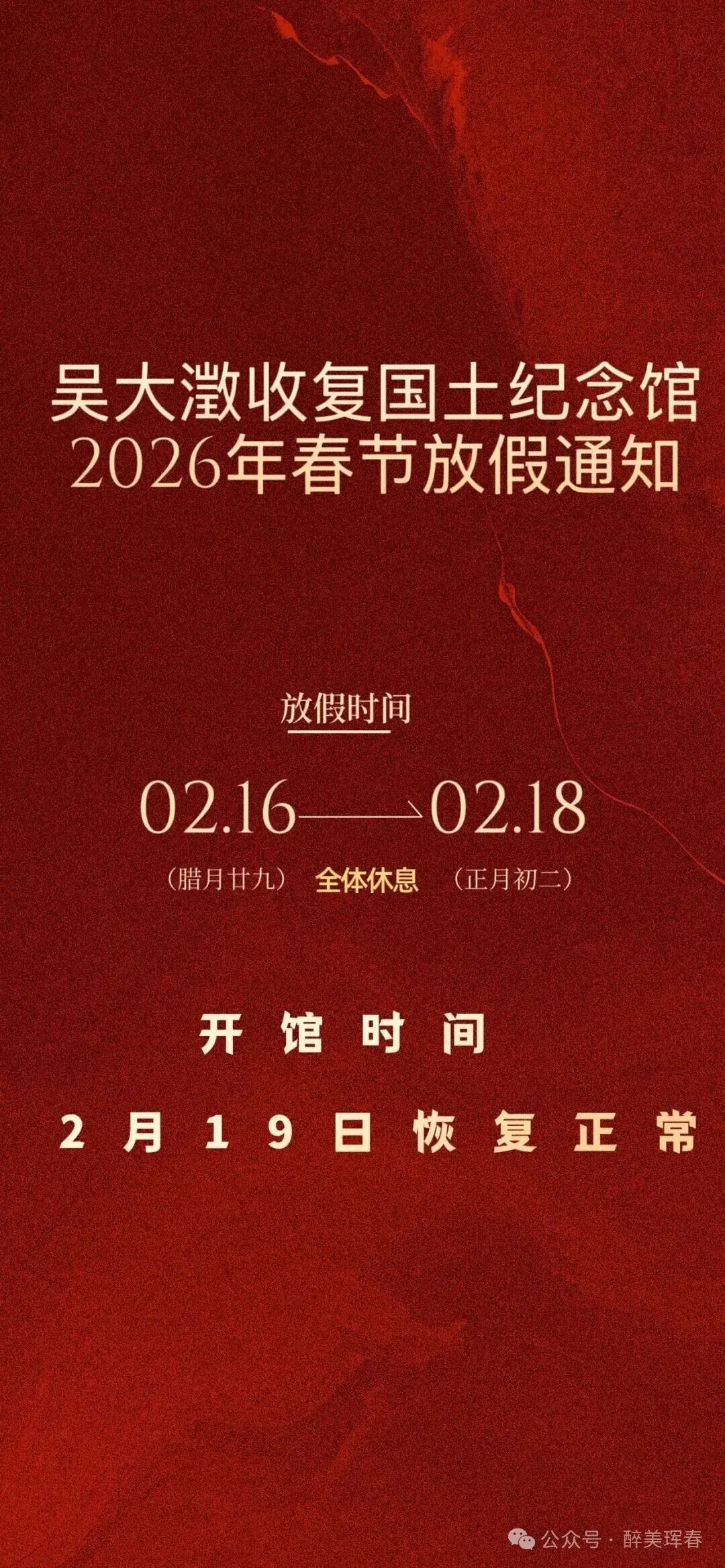 春节期间,除夕至初三(2月16日—2月19日)闭馆,其他时间正常营业,营业时间为9:00-16:30。