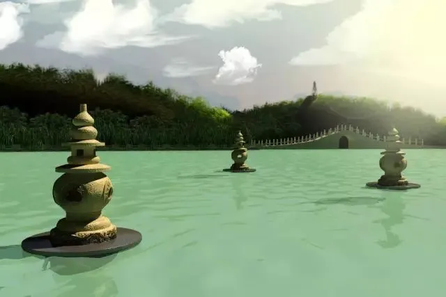 在它背面是三潭映月