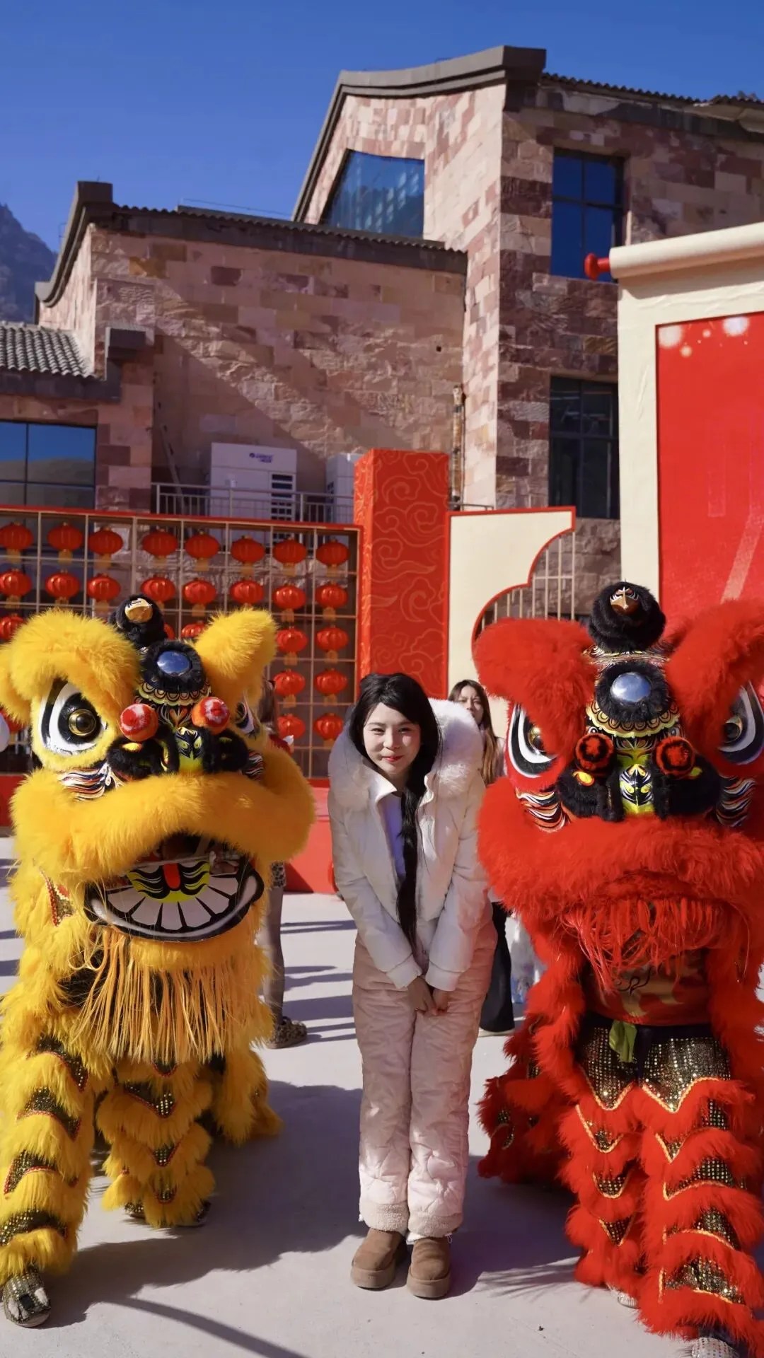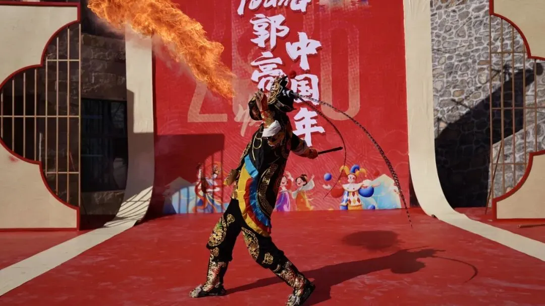 川剧变脸+喷火秒切换,红脸白脸轮番登场,烈焰腾空瞬间点燃全场;舞狮献瑞踏春而来,高桩跳跃、摇头摆尾送福运,马年讨个“狮来运转”的好彩头。