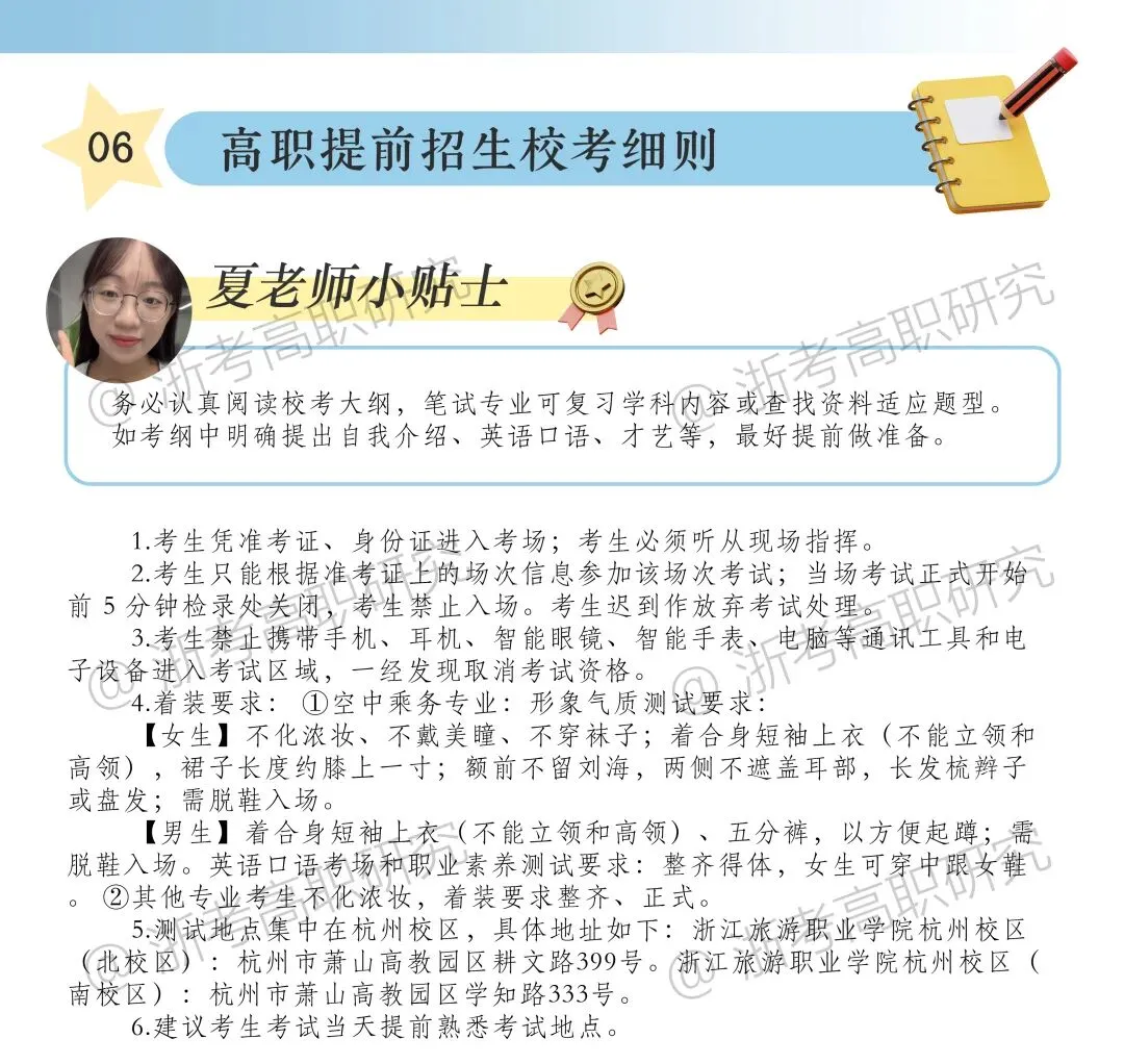 本期推文为大家推送浙江旅游职业学院2026年高职提前招生校考指南,文中长图较多,请点击图片查看高清大图。