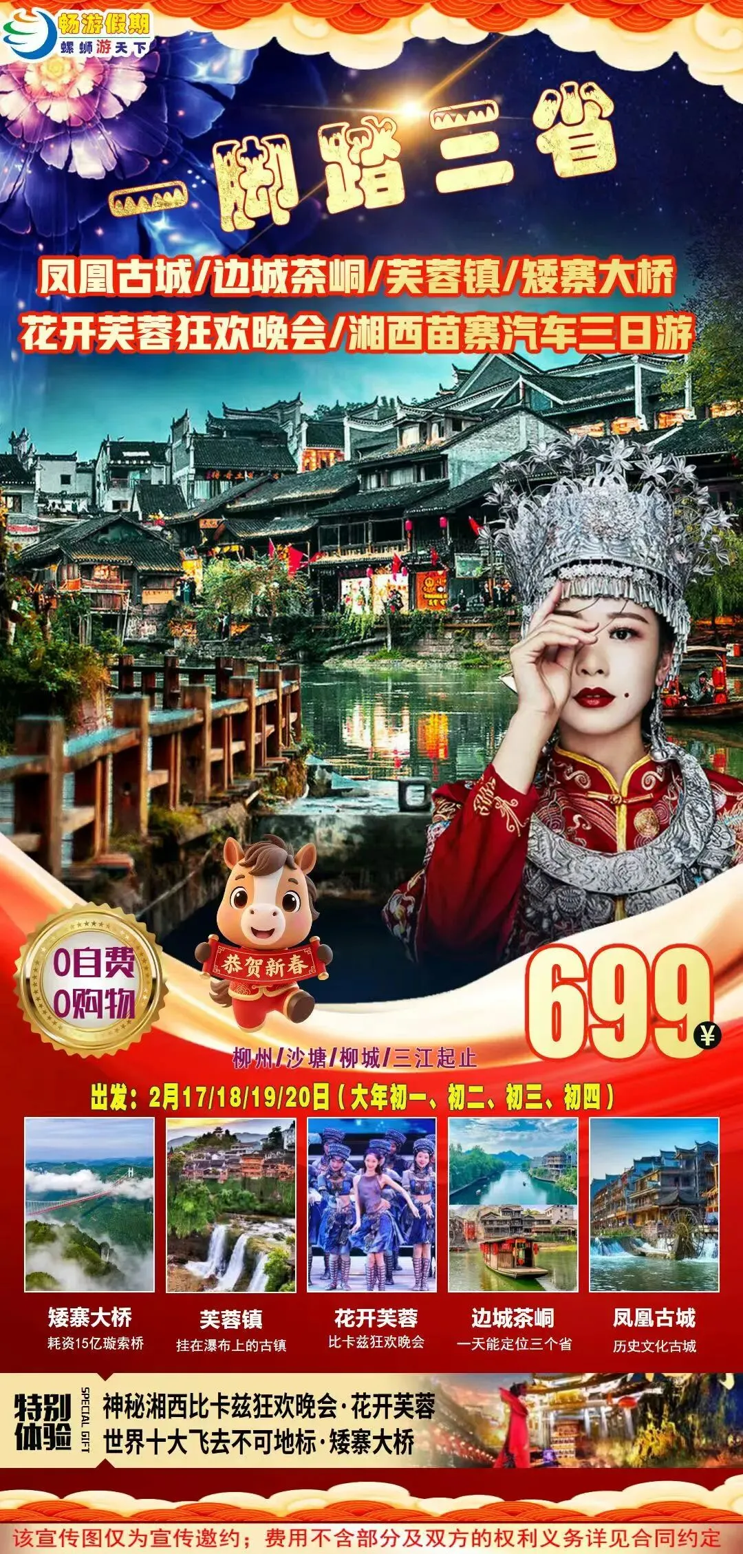 2月19日(已经成团,有位)一脚踏三省·凤凰古城、边城茶峒、芙蓉镇、矮寨大桥精品纯玩汽车3日游699元/人