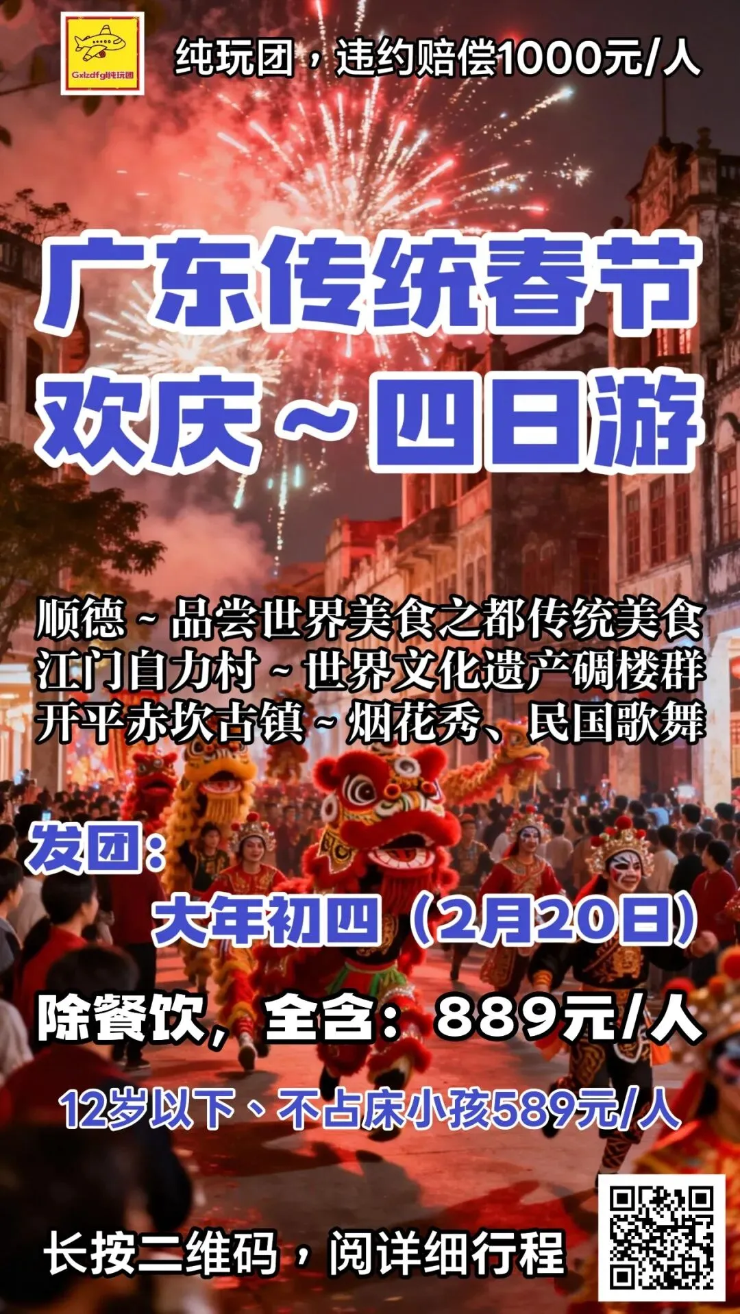 2月20日(年初四,已经成团,有位)广东顺德美食、江门碉楼、开平赤坎古镇*迎新年*纯玩四日游。