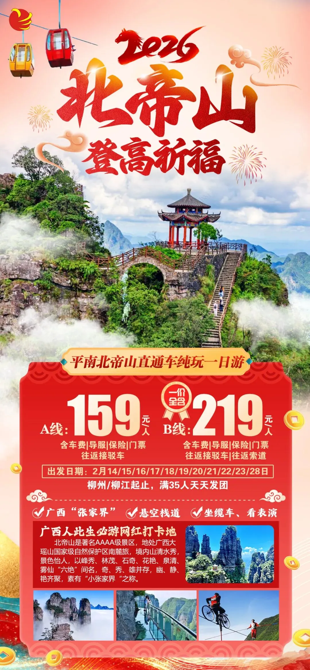 2026,登高望远,福运相伴,打卡“广西张家界”,坐缆车、走悬空栈道,邂逅仙境云海
