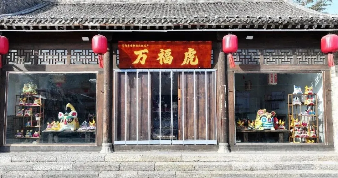 “万福虎”店铺位于浚县古城县前街中段西侧,是河南省非物质文化遗产“万福虎”代表性传承人黄贵莲的孙媳秦然打造的非遗文创形象店,主要售卖“万福虎”系列及部分文创产品。